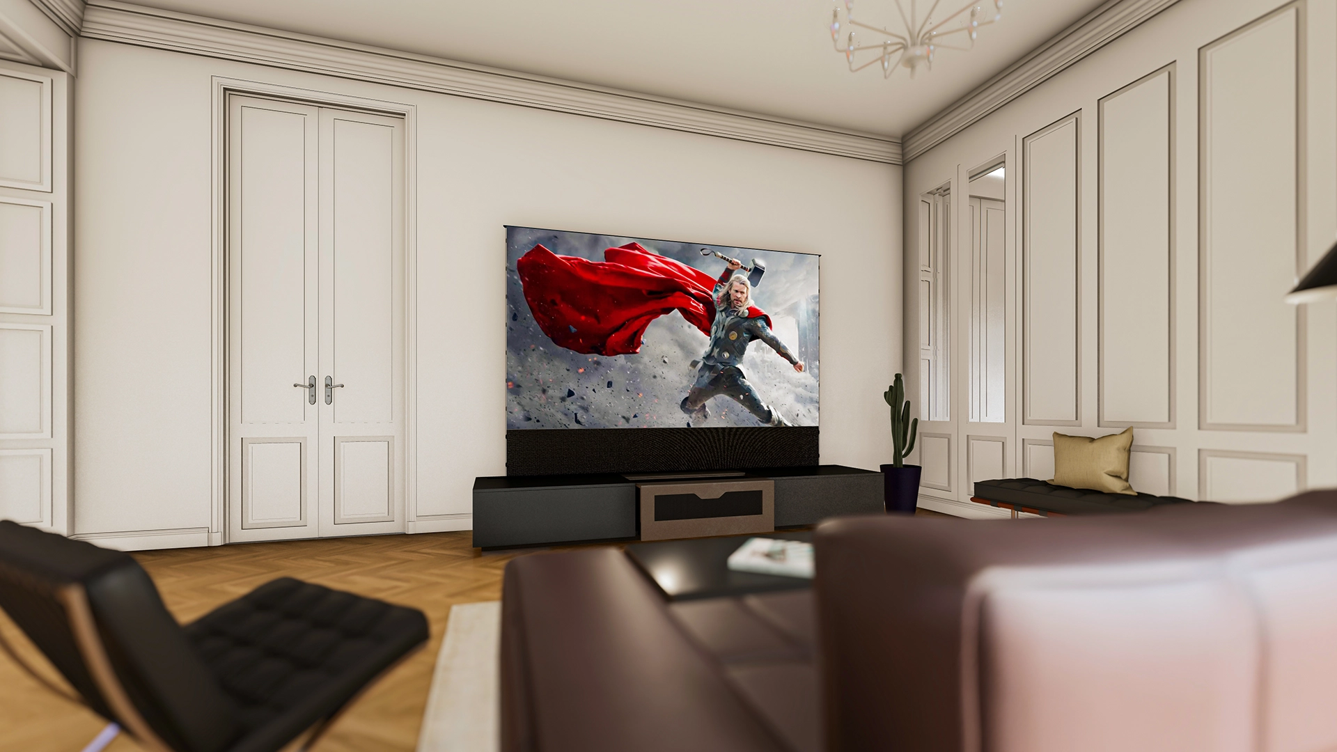 C’est une des raisons qui nous a poussé à créer ce meuble RISE : offrir l’expérience d’un home cinéma, même quand son installation est impossible.