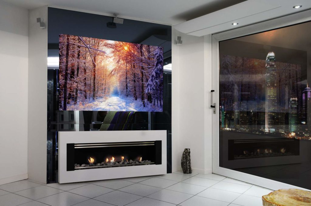 Remplacer sa Tv par un videoprojecteur permet de libérer totalement votre mur d’appareils électroniques. Vous pouvez bien entendu projeter directement sur celui, mais ne profiterez pas pleinement de la qualité d’image du projecteur tout en vous interdisant de décorer le mur à votre goût. Un écran de projection électrique encastré est ainsi idéal pour profiter de vos moment de divertissement tout en gardant votre intérieur exempt d’éléments électroniques disgracieux. Côté projection, des videoprojecteurs intelligents tels que AiO permettent de se fondre dans le décor et de profiter directement de contenus comme Netflix, BeInSports et bien d’autres, grâce à son interface intelligente et intuitive.