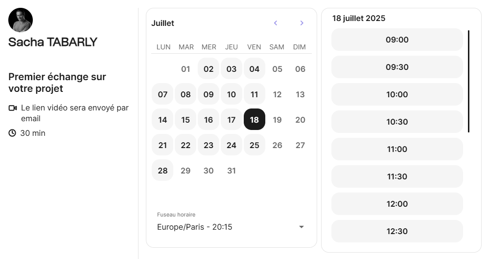 Après votre configuration, un appel visio avec Sacha (notre co-fondateur et expert audio/vidéo) vous est proposé pour :